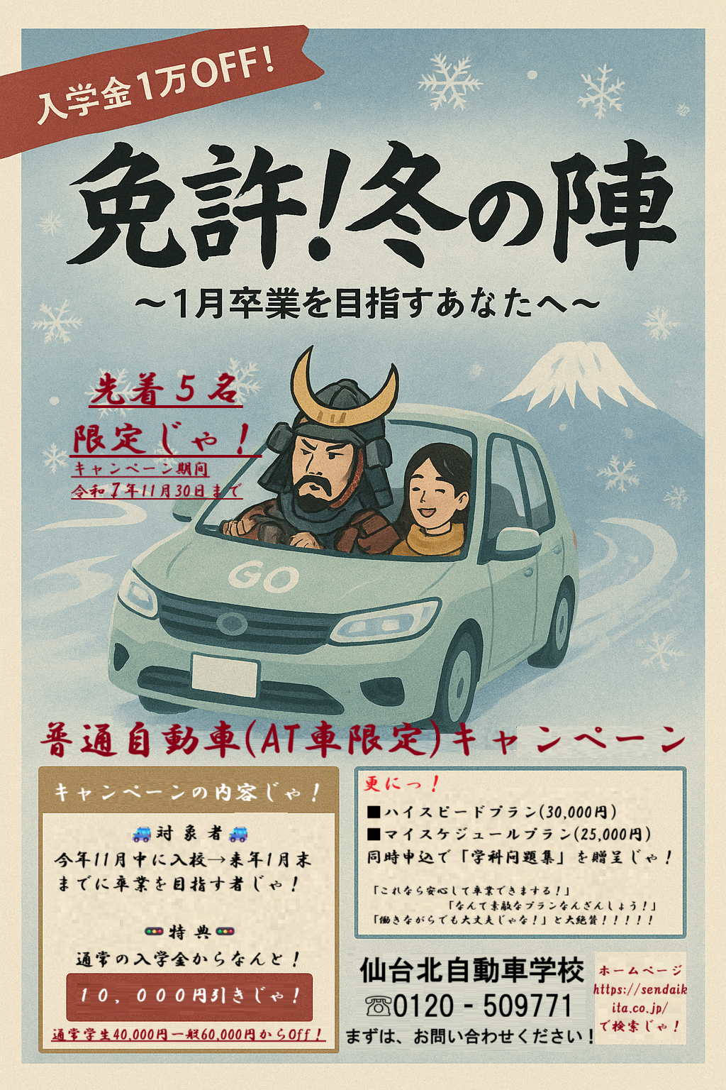新キャンペーン「免許!冬の陣」の始まりじゃ!