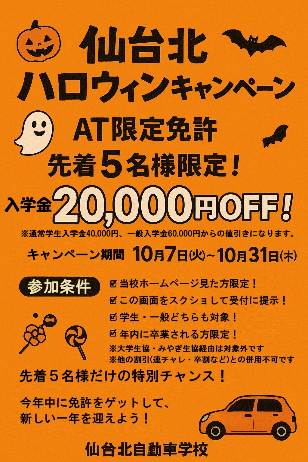 仙台北「ハロウィンキャンペーン」でお得に楽しく免許をゲット!