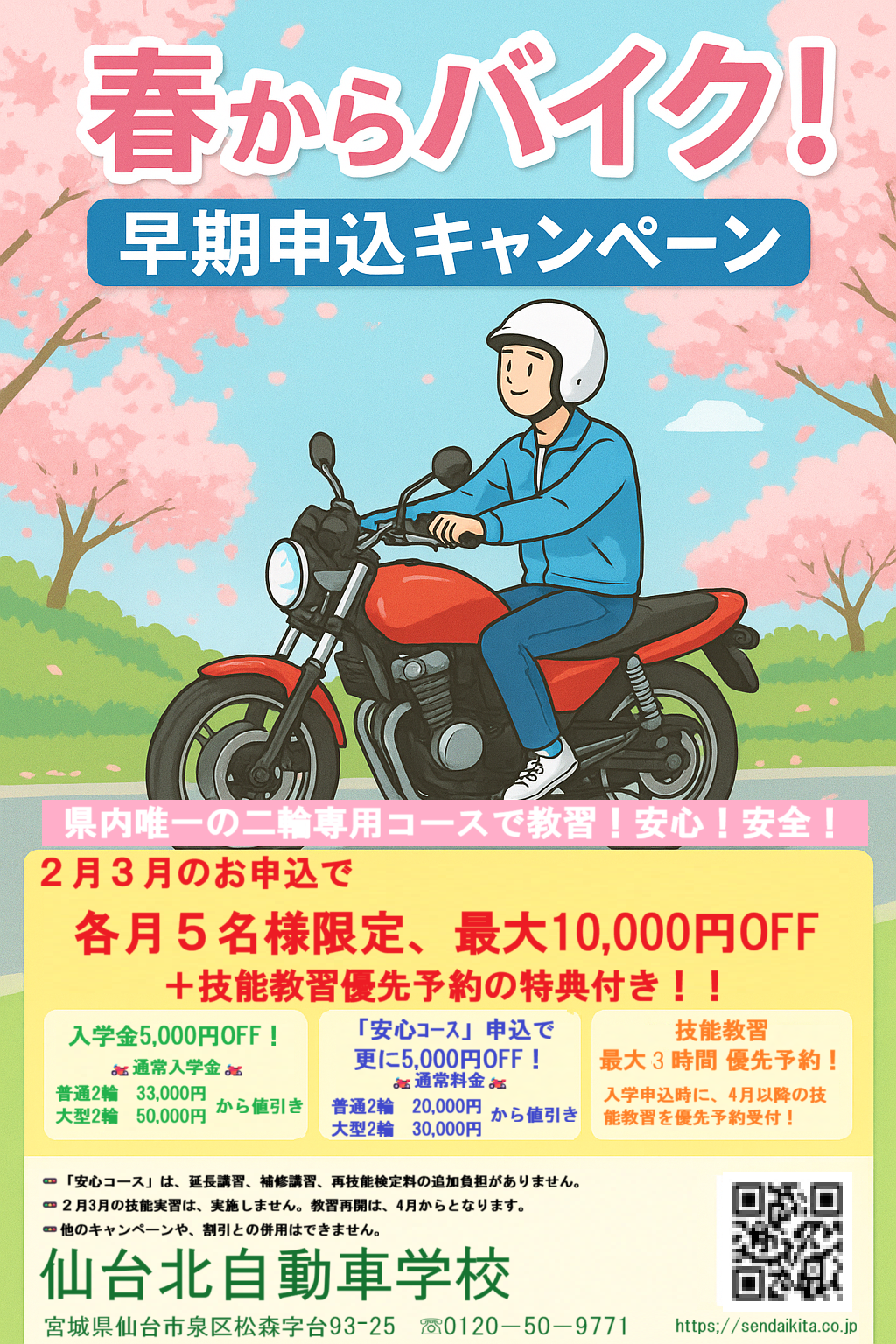 お申し込みの差は、「春からバイク!キャンペーンで申し込みます」とスタッフにお伝えください!